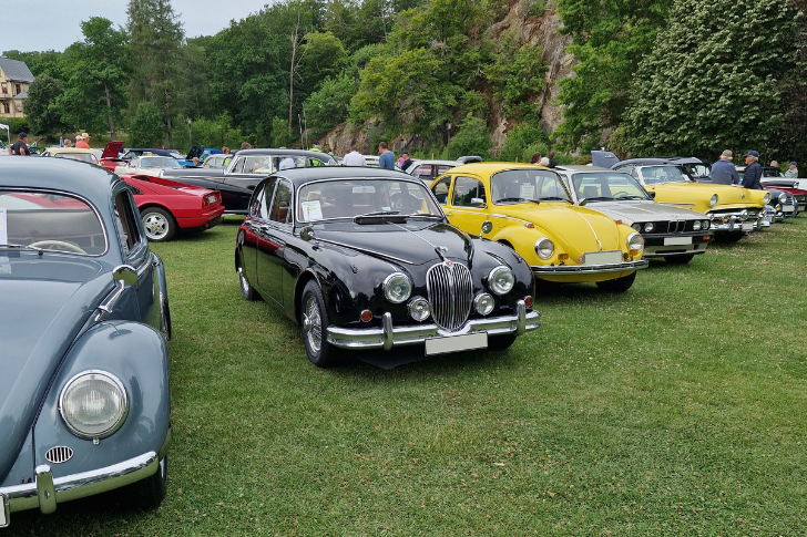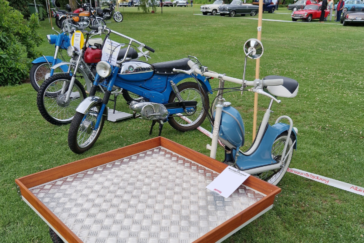 Många fina originalbilar, mopeder och motorcyklar på plats